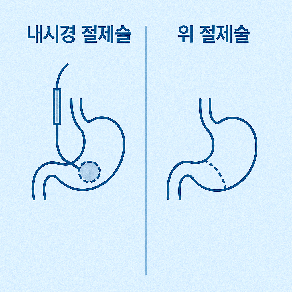 | 내시경 절제술 | 점막층에 국한된 조기 위암 | 절개 없이 제거 가능 |
