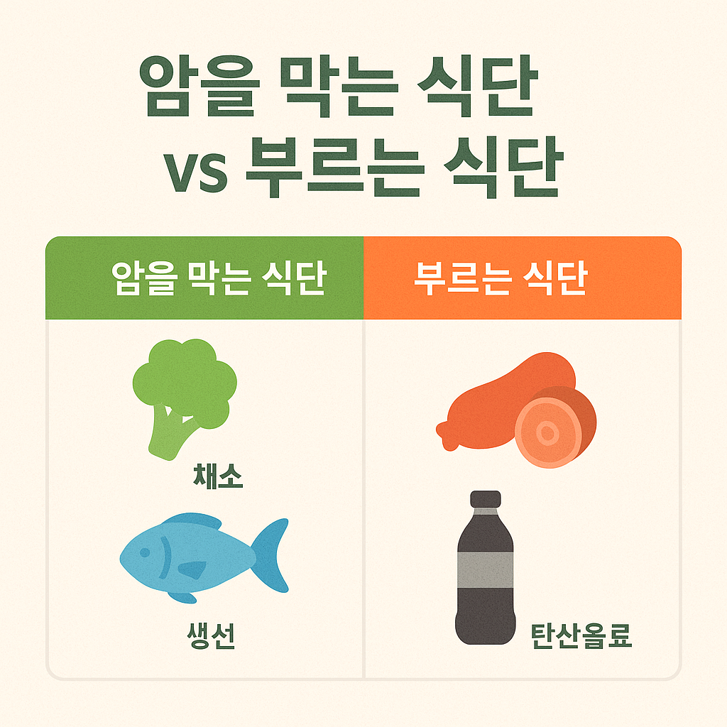 🥦 2️⃣ 암을 막는 음식 — 세포를 지키는 방패