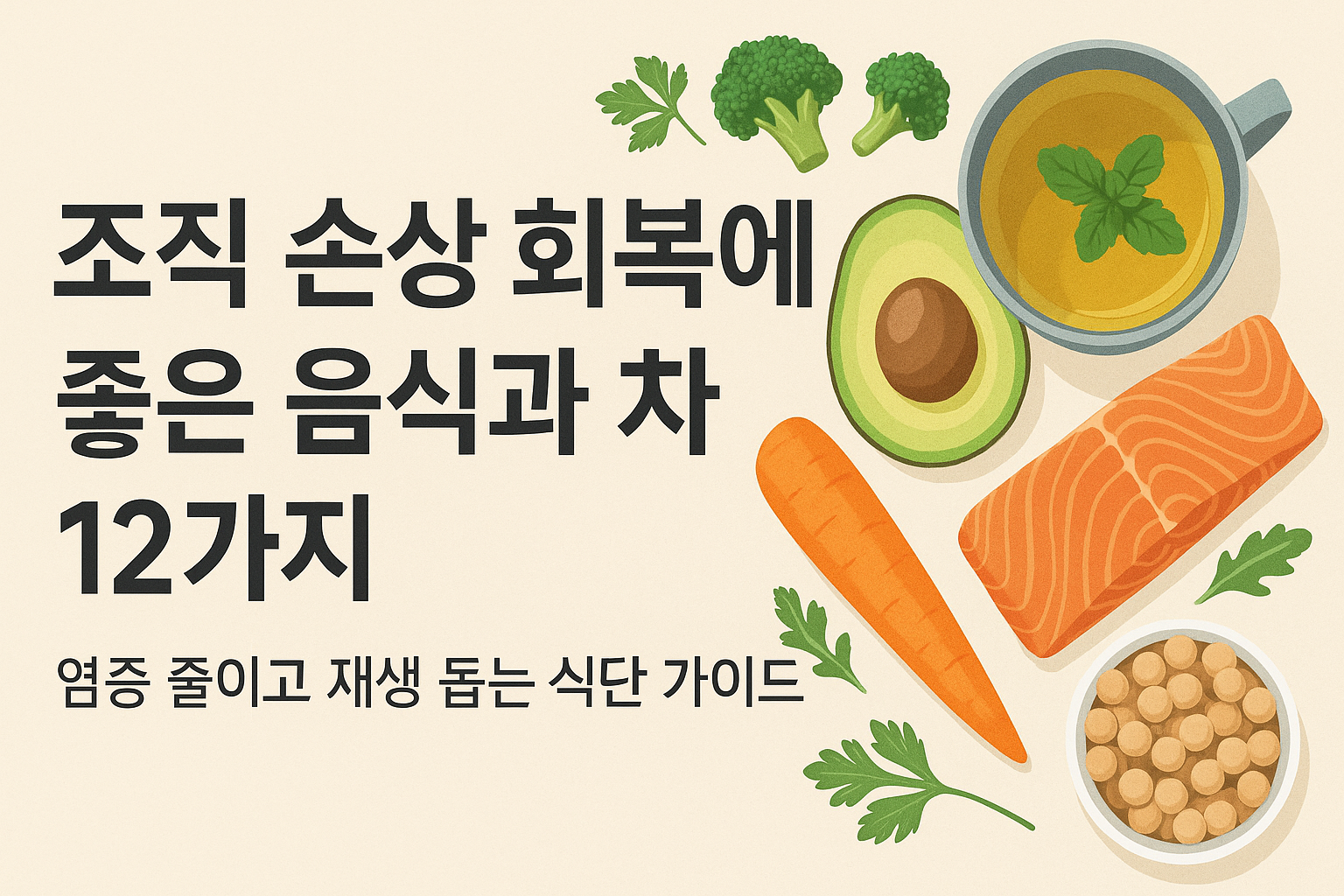 몸속 염증이 낮아야 조직이 정상적으로 재생될 수 있습니다. 항염 식품들은 회복을 방해하는 불씨를 잡아주는 역할을 해요.