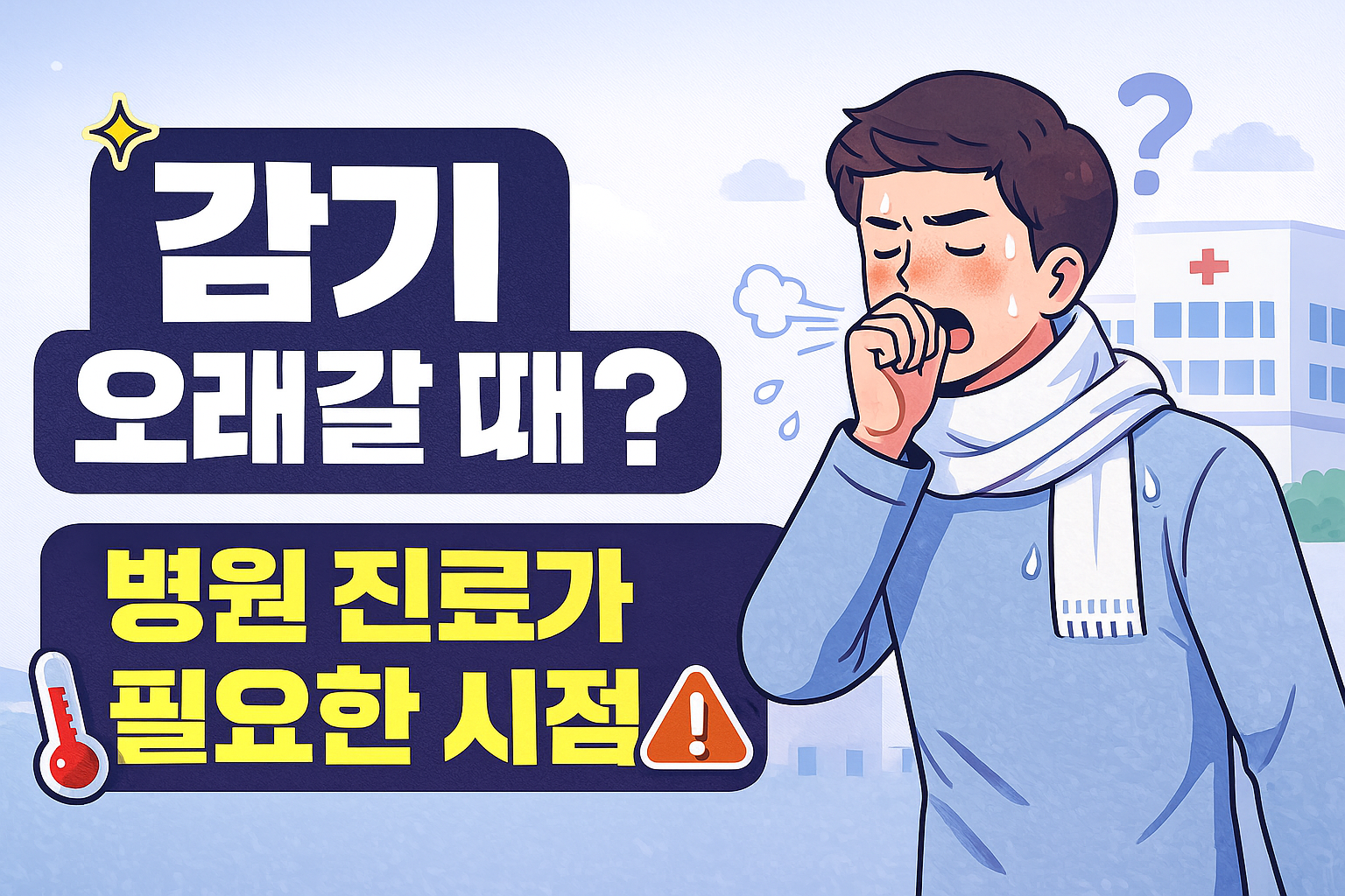 감기는 대부분 3~7일 내 호전되지만, 증상이 1~2주 이상 지속되거나 악화될 경우 단순 감기가 아닐 수 있습니다. 아래에서는 병원 방문 기준과 집에서 할 수 있는 관리법을 정리해드립니다.